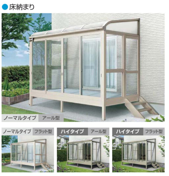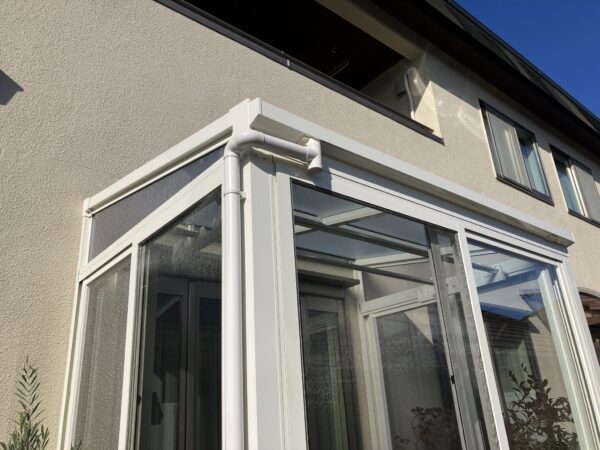 サンルームはYKKのソラリアの床納まりタイプです。色は明るめの色合いが良いとの事でホワイトを選択しました。屋根は熱線遮断ポリカを取付けております。
