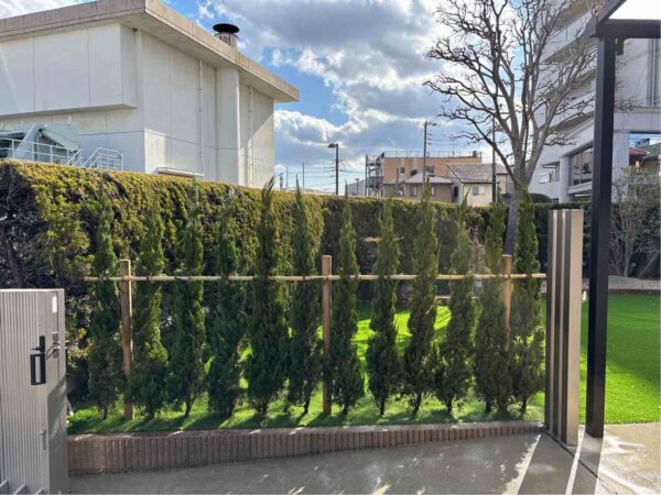 植栽なら工期もフェンスなどに比べても短くて済みます。