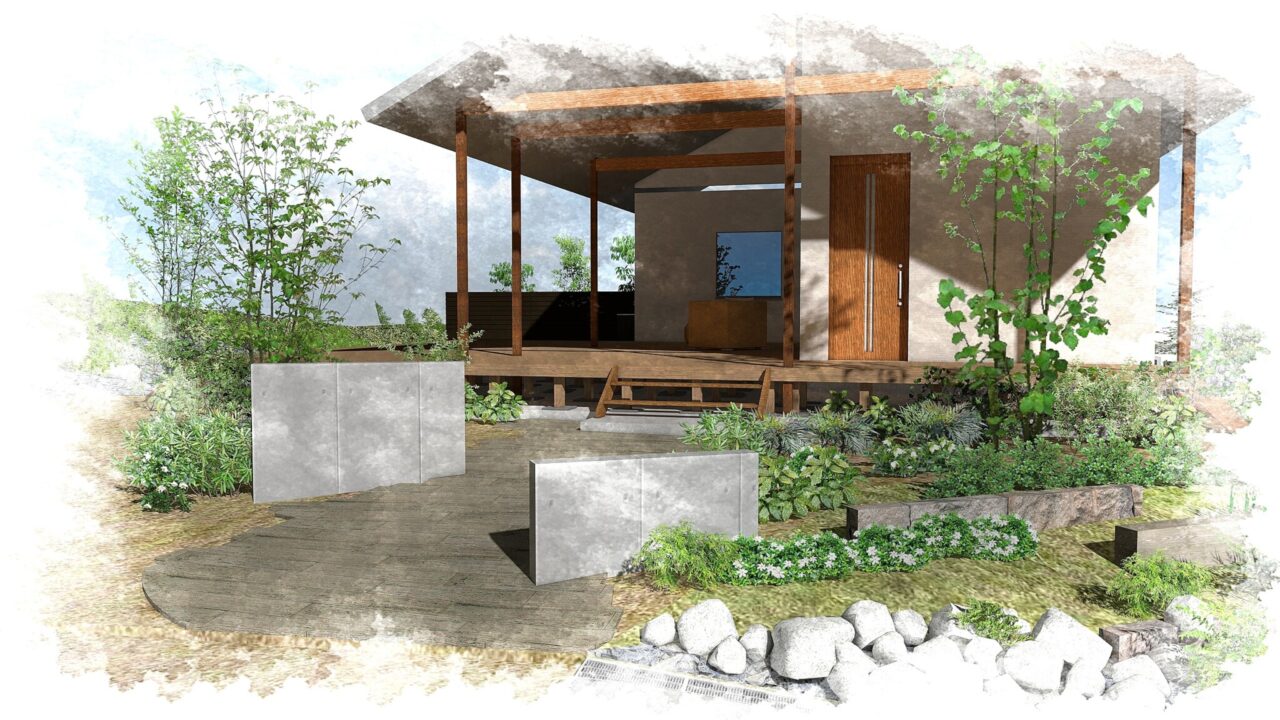 ゲストハウス正面側のイメージパースです。